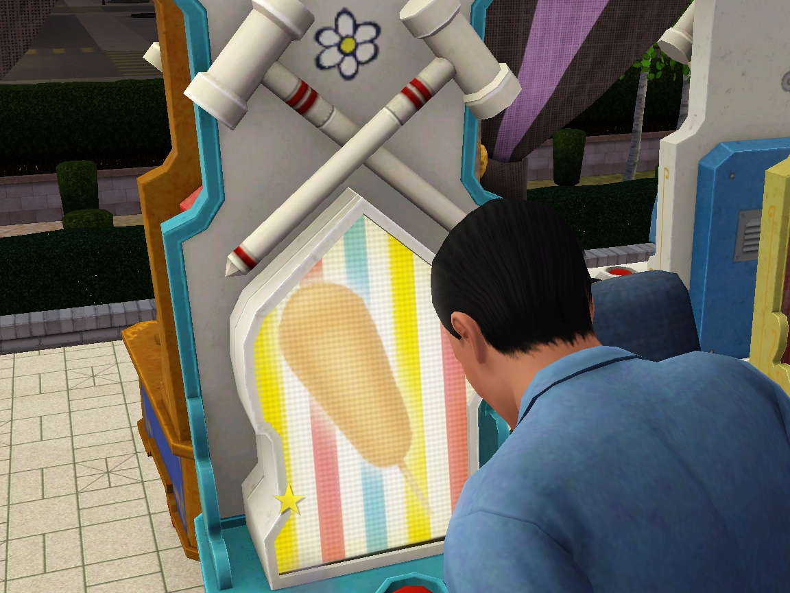 The second premium content included with the venue is a set of two content- The Popcorn Machine and the Cotton Candy Maker. Elders and children can use them. Keep in mind that eating these treats won't increase your Sim's hunger or make them gain weight. They are available in one flavour only. There are new animations of the cotton candy maker as shown below: